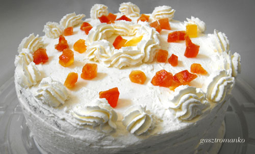 Az alsó piskótalapot kenjük meg vékonyan krémmel, szórjuk meg a papayával, majd kenjünk még krémet rá. A másik lapot rátéve vonjuk be a tortát és díszítsük kedvünkre.